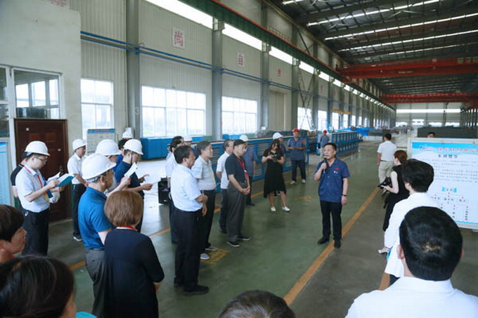 在隆华装备公司总装调试车间,调研组就隆华产品和市场相关情况,不时的向现场的技术工程师和一线员工进行问询,展开热烈的交流和讨论。在参观并不断深入了解隆华产品现场制作流程后,代表们纷纷点赞隆华品质。
