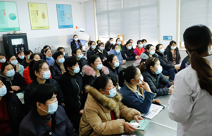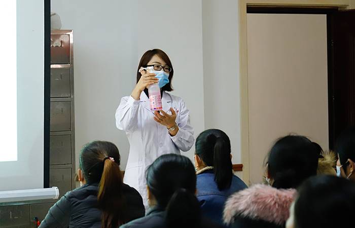 石墙镇卫生院的大夫走进我司,对如何正确的洗手,口罩正确的佩戴方法,女士身体的保养和维护以及疫情防护需要注意的内容进行了详细的讲解。