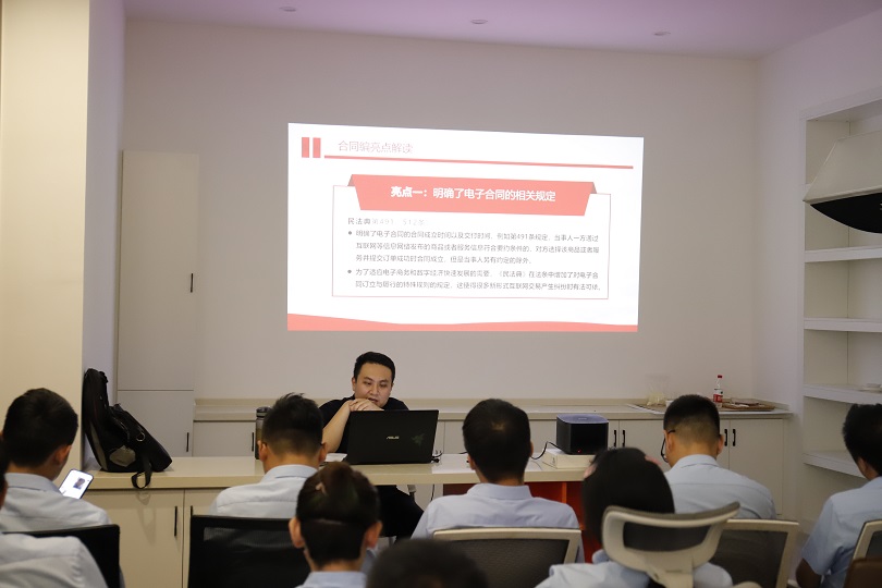 活动中,宋律师结合实际案例就签订合同过程中会遇到哪些法律问题、 新增加民法典的相关内容、 在工作和生活中遇到的法律问题等与员工生活关联密切的法律知识,进行了深入细致的讲解。通过生动的案例、通俗易懂的语言,为企业员工普及法律知识。