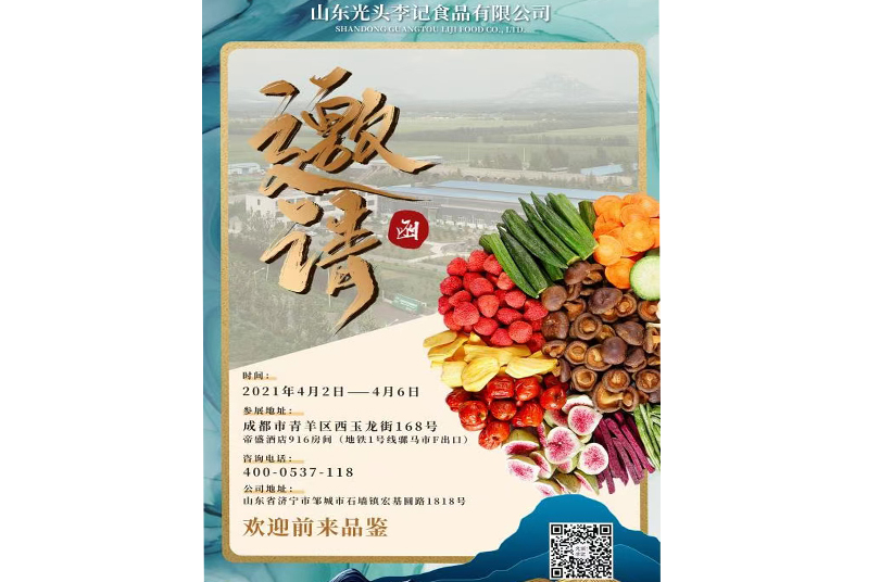 第104届全国糖酒会即将在成都举办,公司将于2021年4月2日——4月6日参展,地址是成都市青羊区西玉龙街168号,帝盛酒店916房间(地铁1号线骡马市F出口),届时我们在此恭候各位合作伙伴的光临!