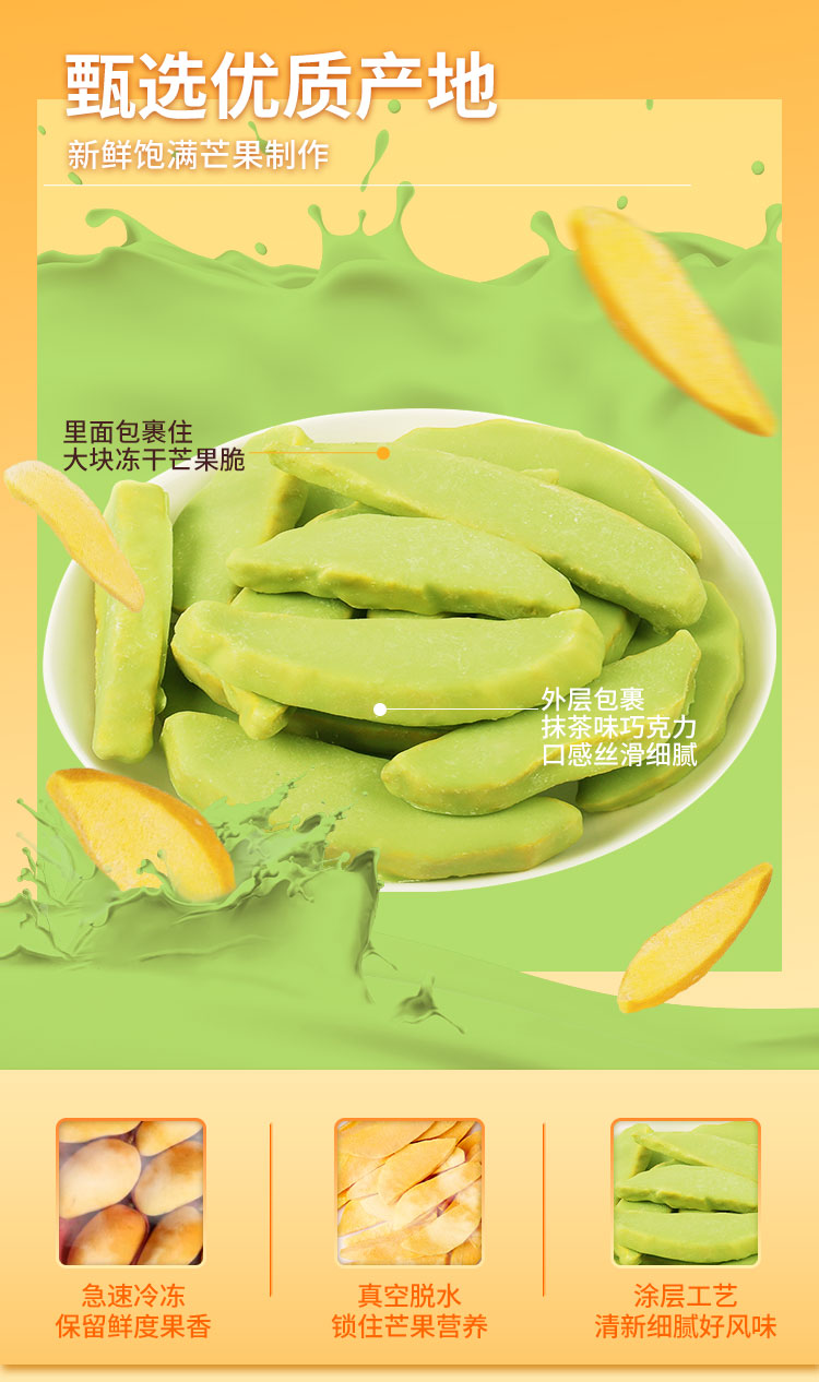 抹茶涂层冻干芒果